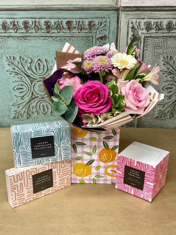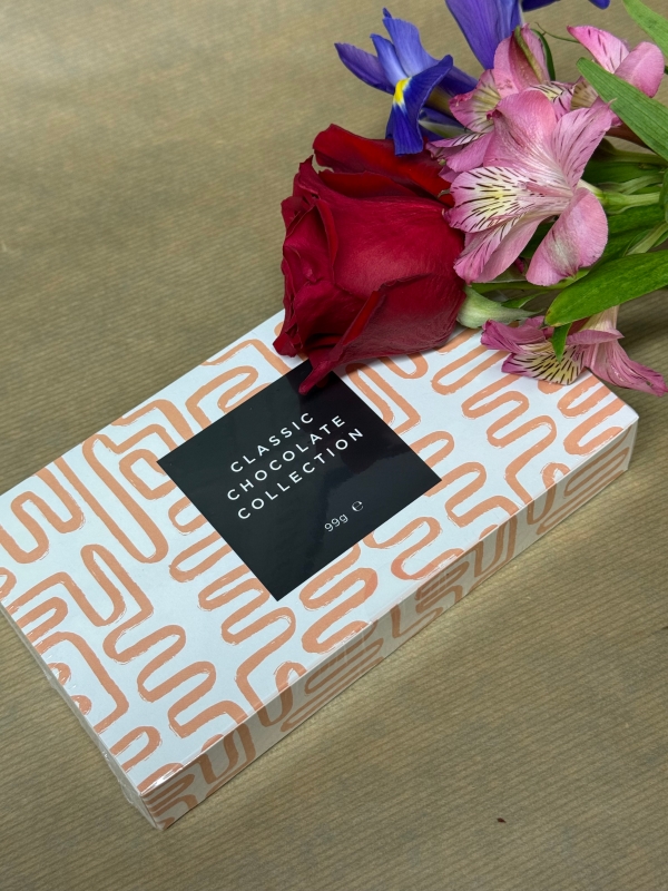 A beautiful floral gift box with your choice of chocolates
